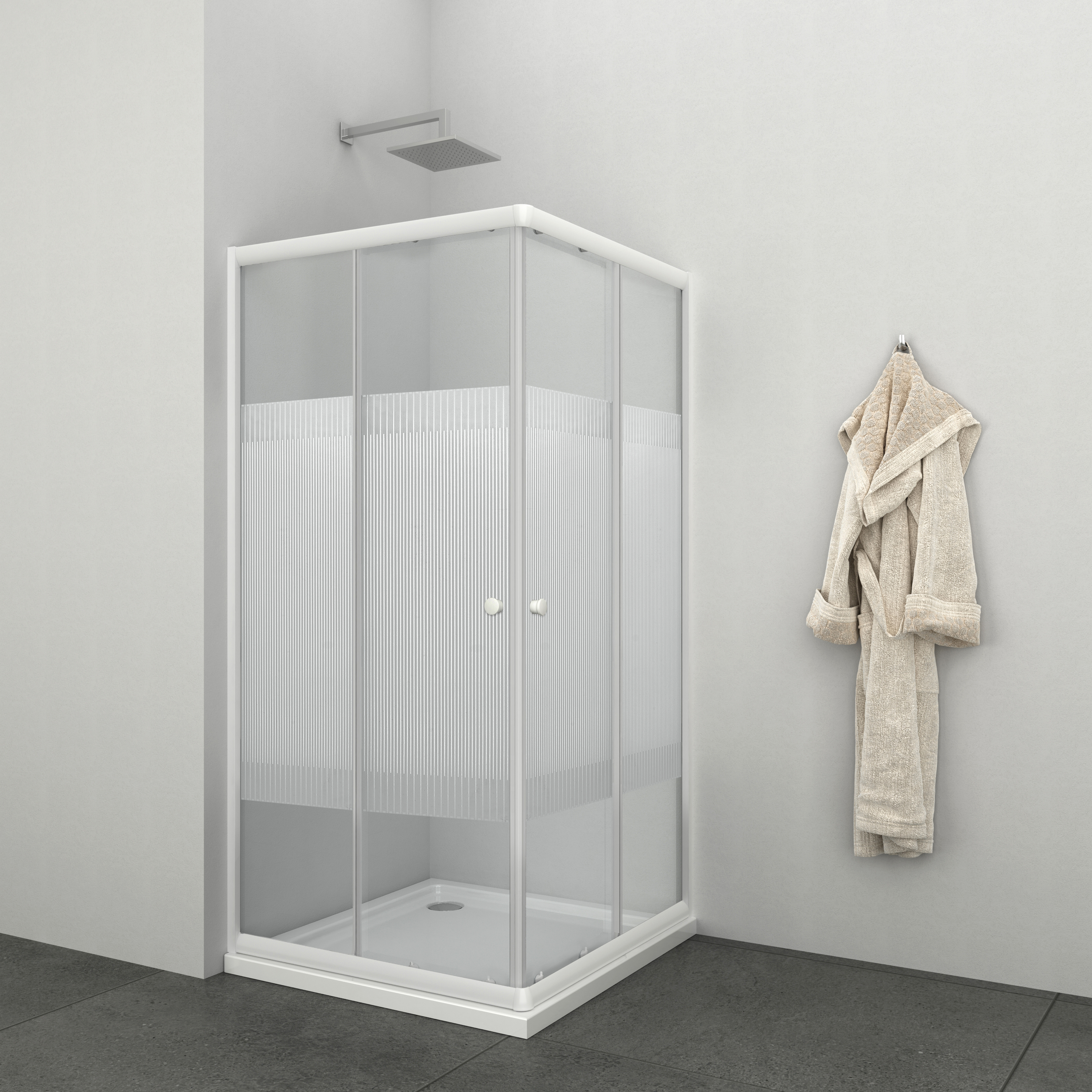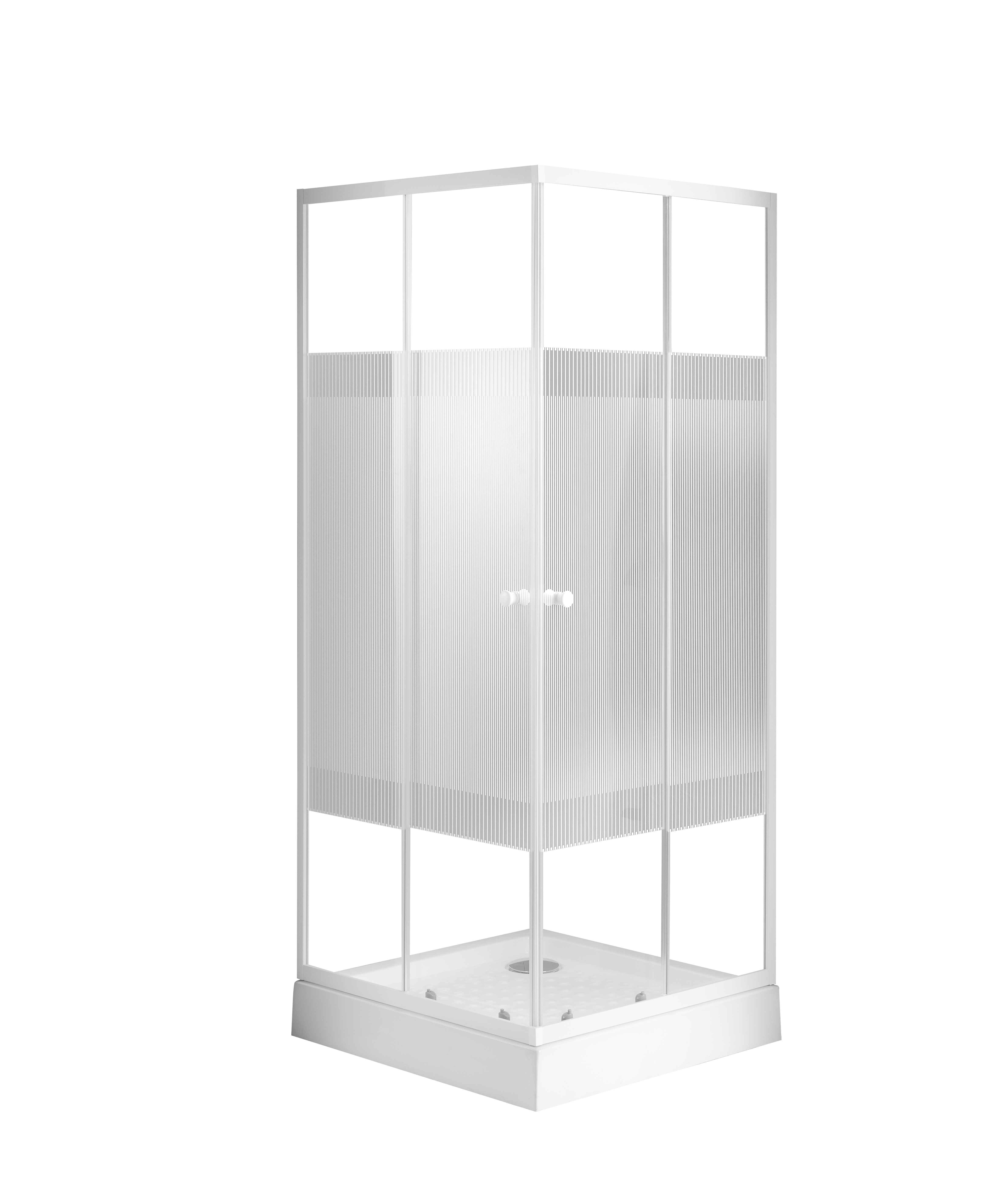 Sanotechnik - Eckdusche m.Streifengl weiss 89-90x89-90X180cm