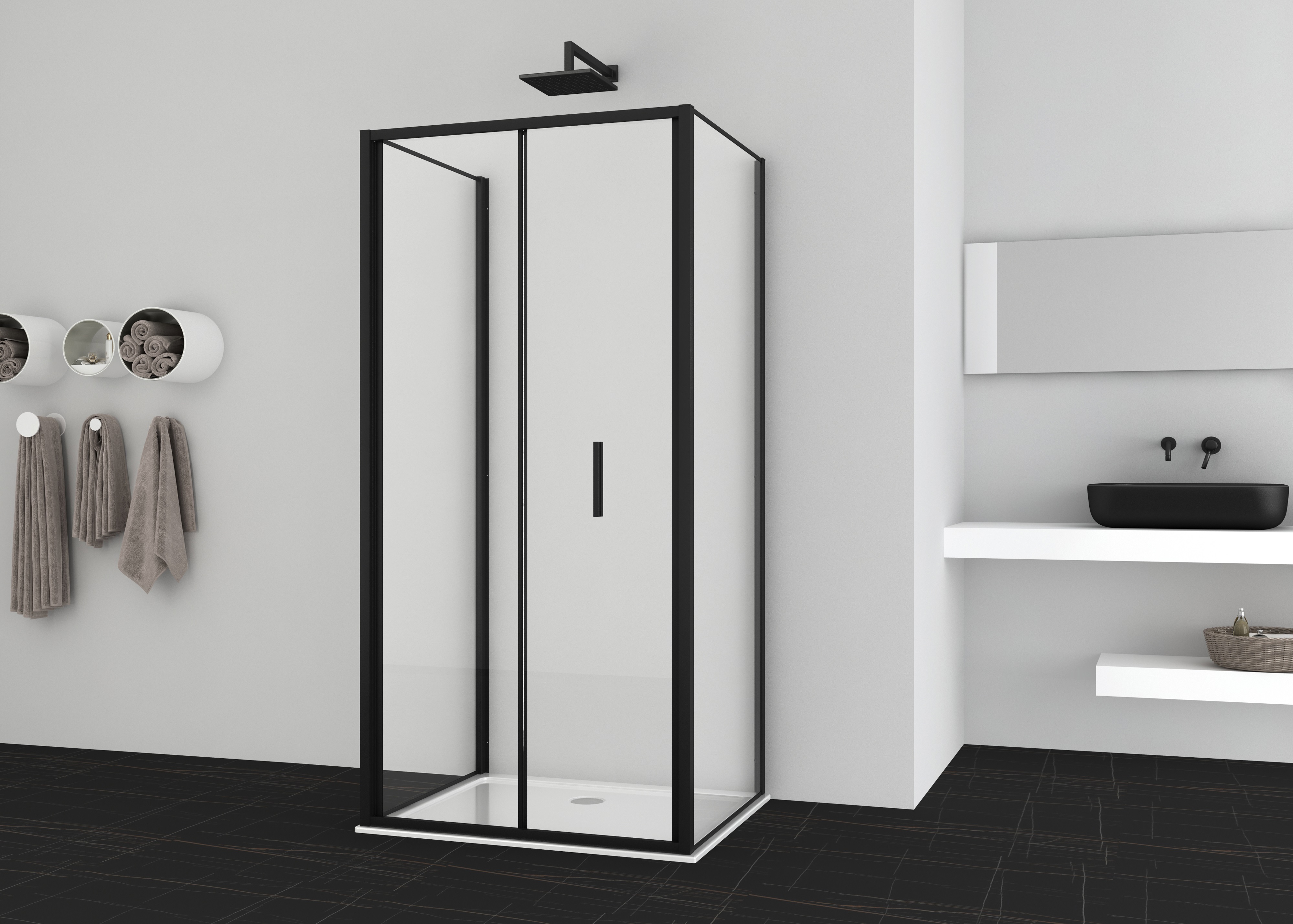 Sanotechnik - Falttür schwarz 78-82x200cm 6mm Easy-Clean