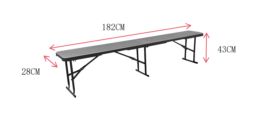 Kompakt und platzsparend: Die praktische Klappfunktion ermöglicht ein einfaches Verstauen und den flexiblen Einsatz. Die Bank misst 183x28x43cm und ist in der Mitte zusammenklappbar.