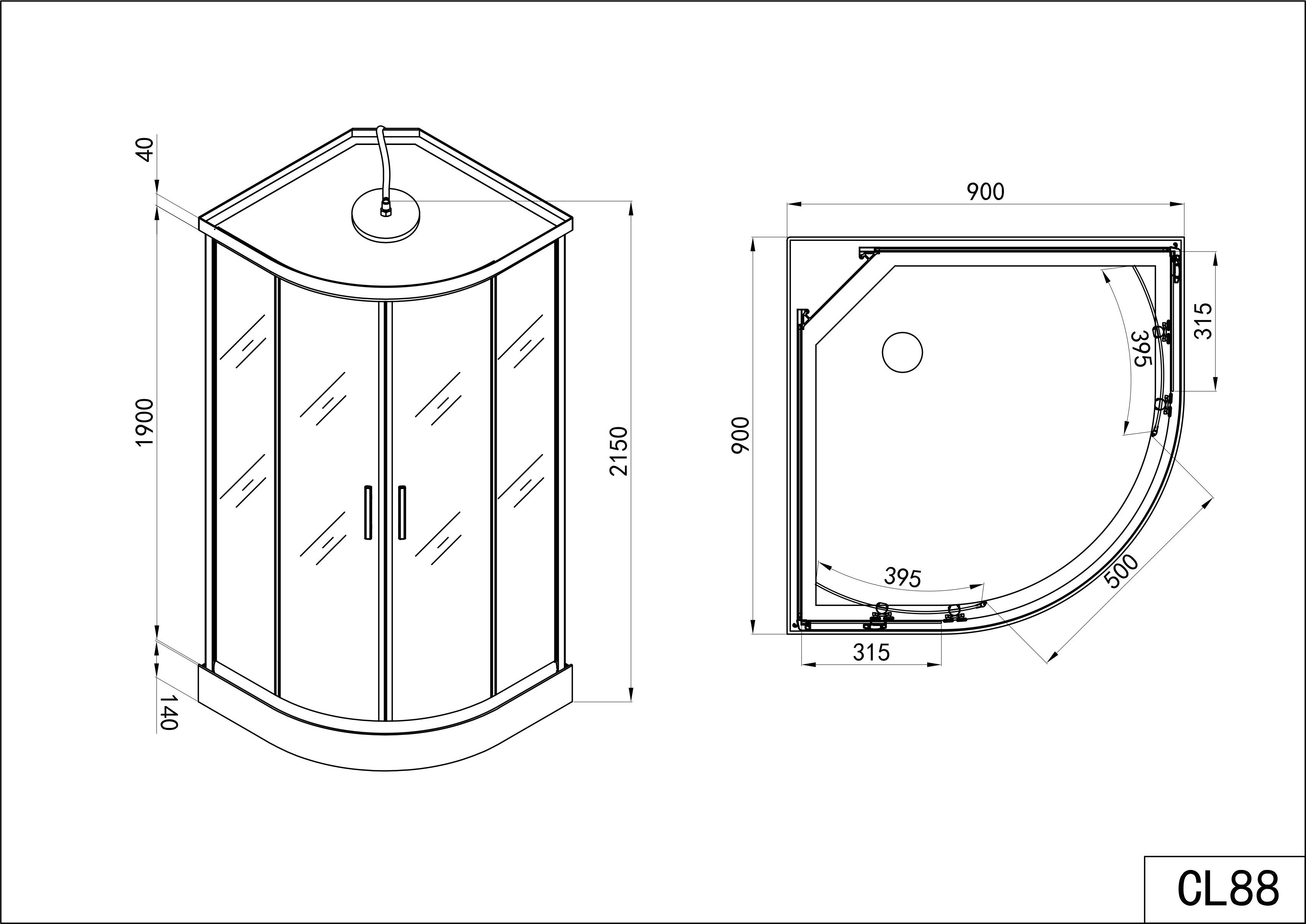 - Maße in cm (LxBxH): 90 x 90 x 215cm