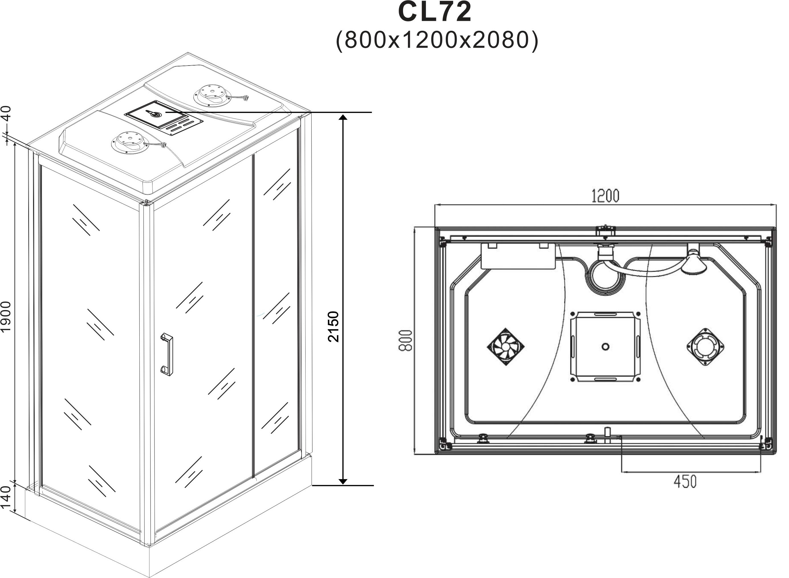 Sanotechnik - Komplettdk TREND 3 80x120x215cm Quickline
