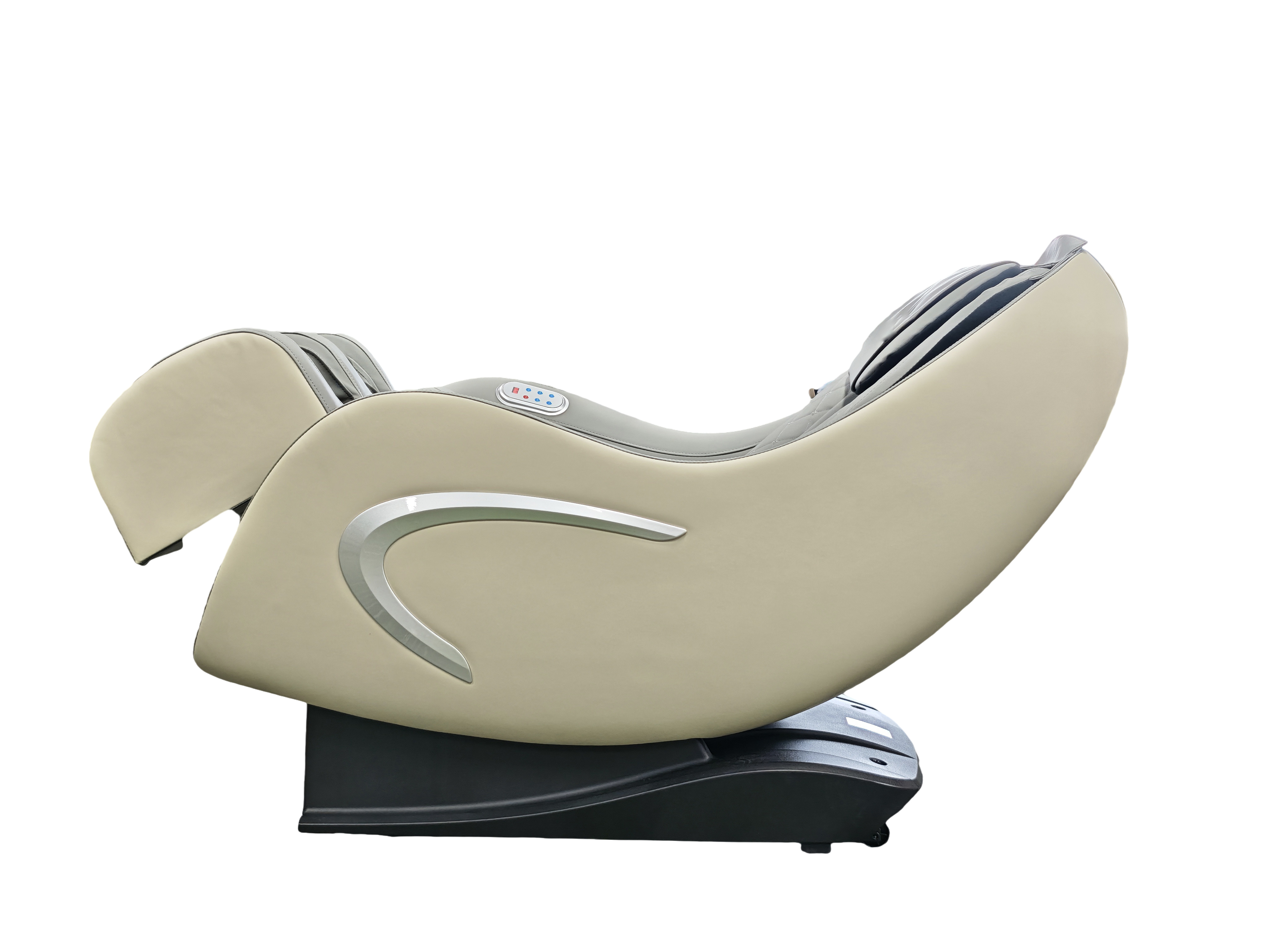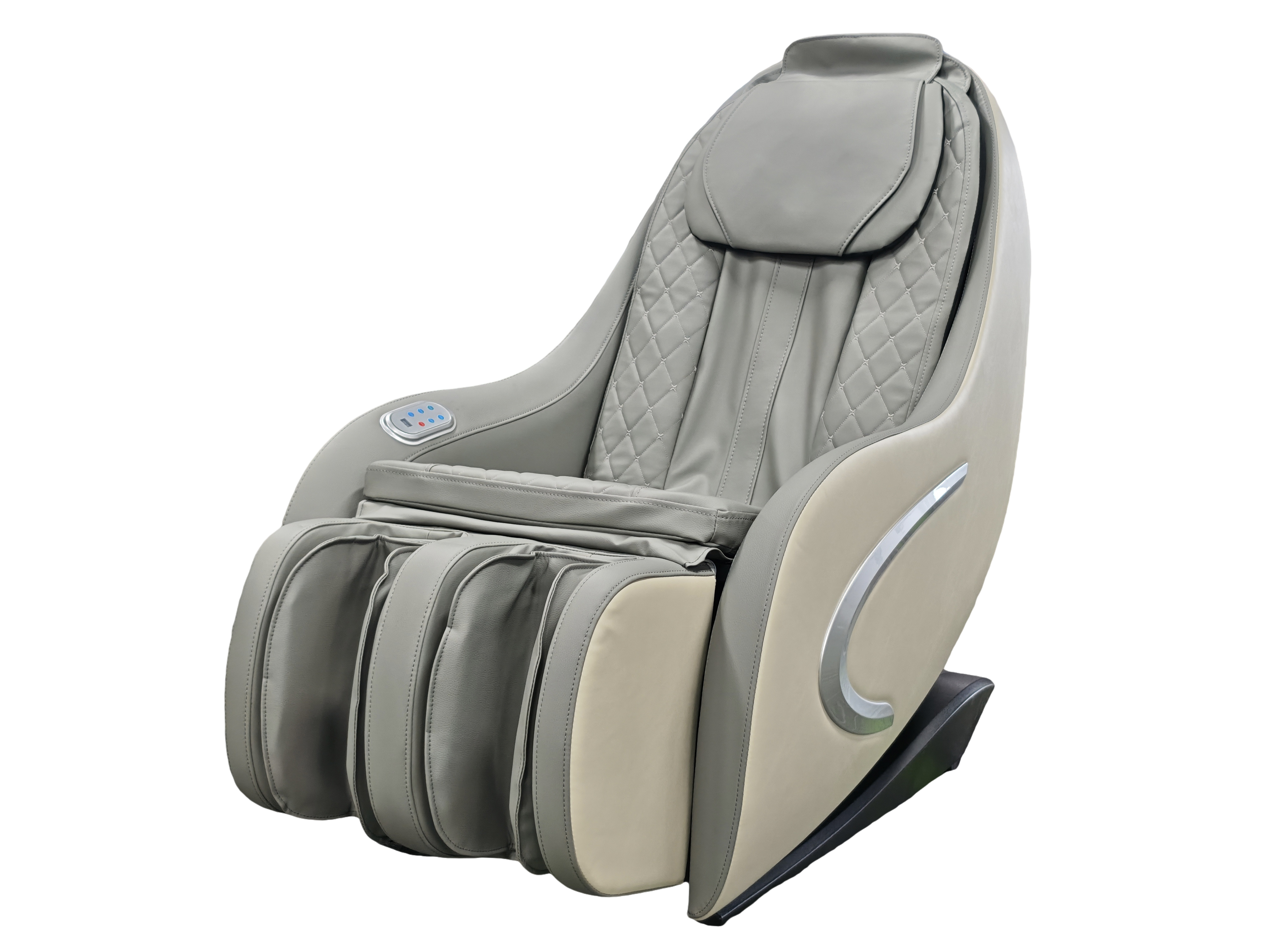 Der LUXUS-MASSAGESESSEL in edlem Grau/Beige bietet ein modernes Design kombiniert mit innovativer Massagetechnologie – für vollkommene Entspannung und körperliches Wohlbefinden. Ob zur Regeneration, Stressreduktion oder einfach zum Abschalten: dieser Sessel verwandelt jeden Raum in eine private Wellnesszone.