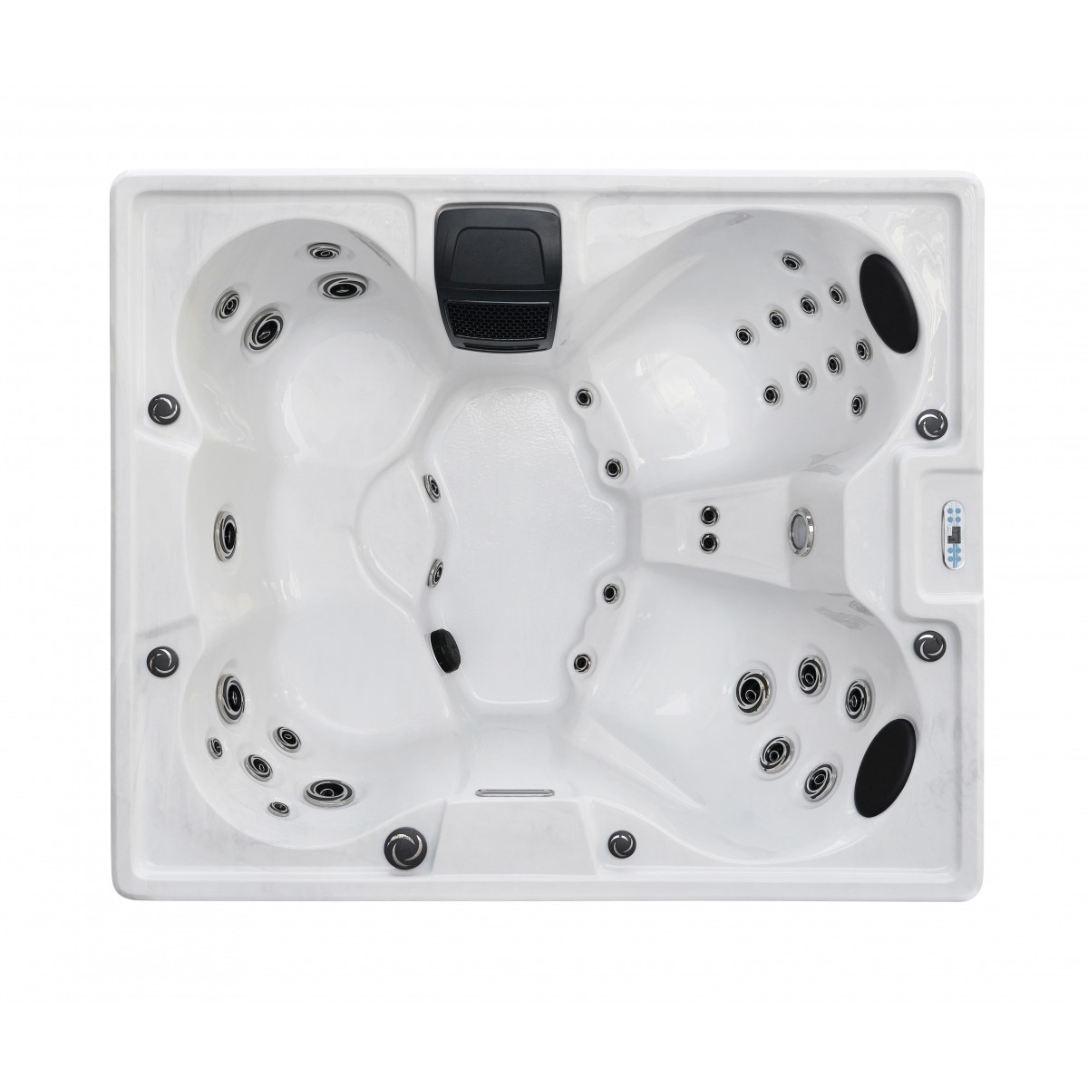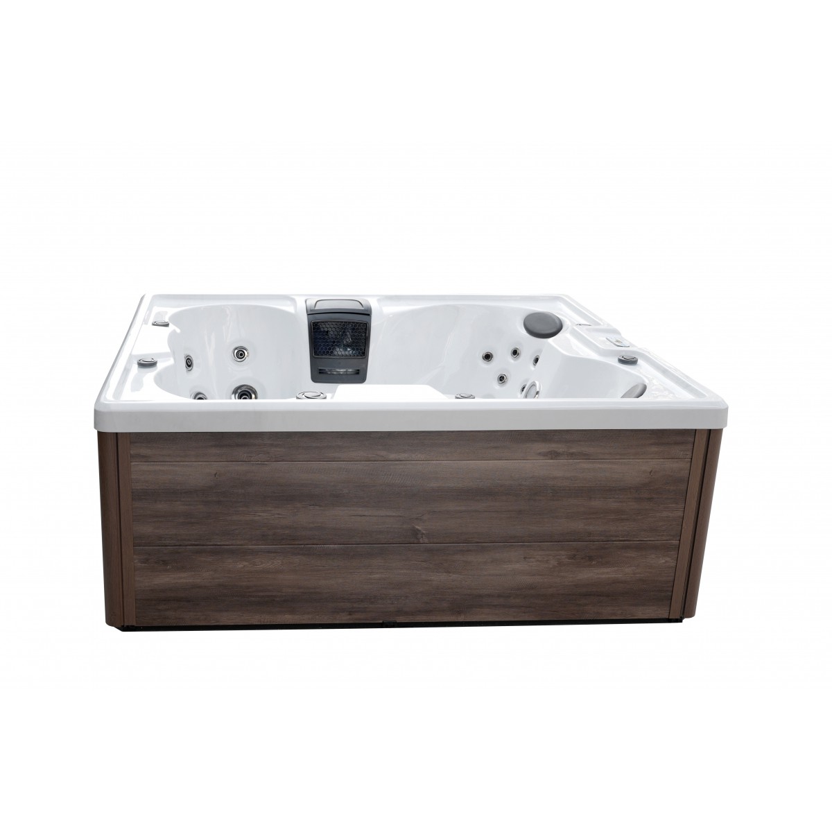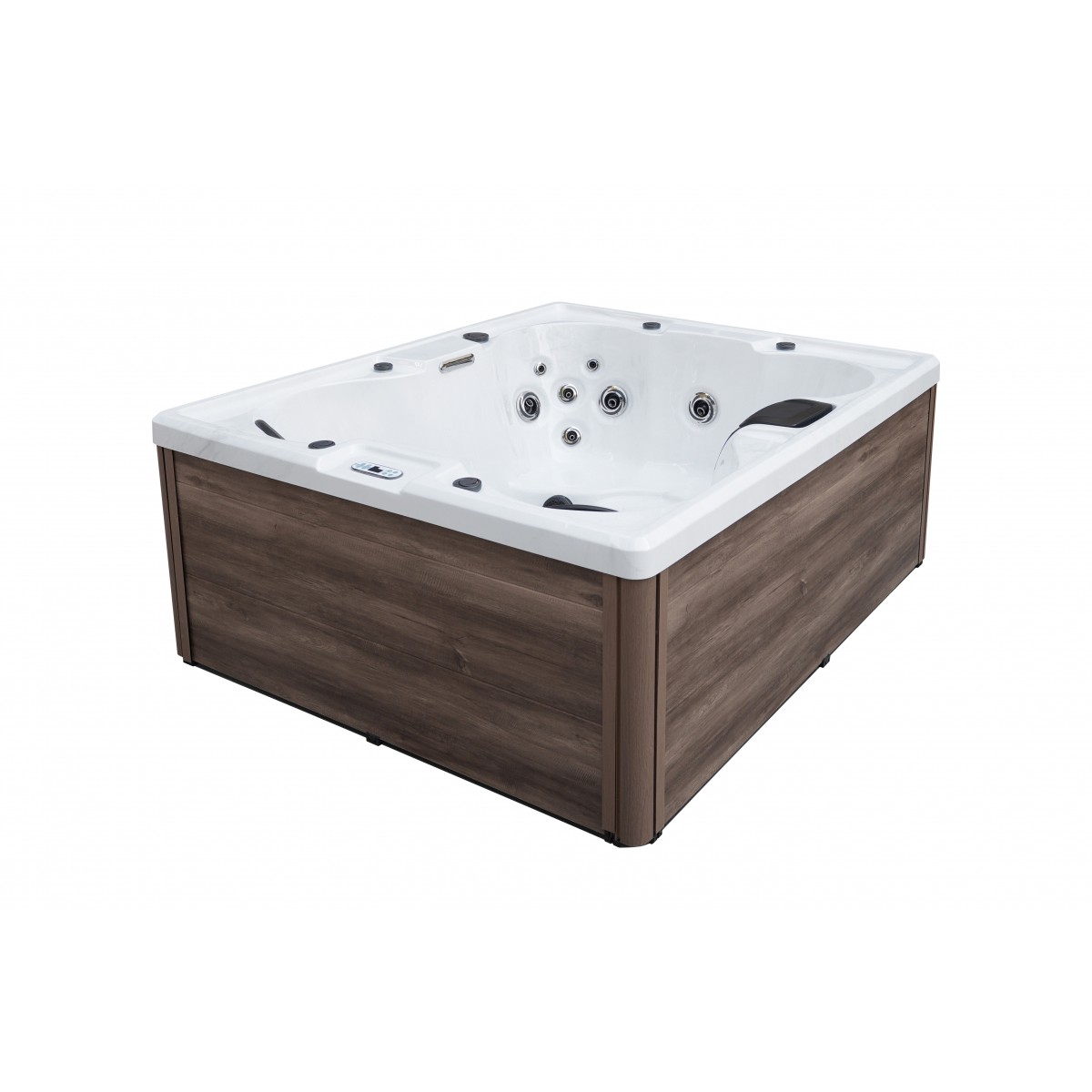 Über das digitale Bedienelement mit fortschrittlicher elektronischer Steuerung lassen sich Temperatur und Massagefunktionen bequem anpassen. Das wärmedämmende System garantiert Energieeffizienz, während die UV-Desinfektion, der Kartuschenfilter und das Skimmer-System das Wasser dauerhaft klar halten – eine ergänzende Chlorzugabe ist erforderlich, um optimale Hygiene zu gewährleisten.