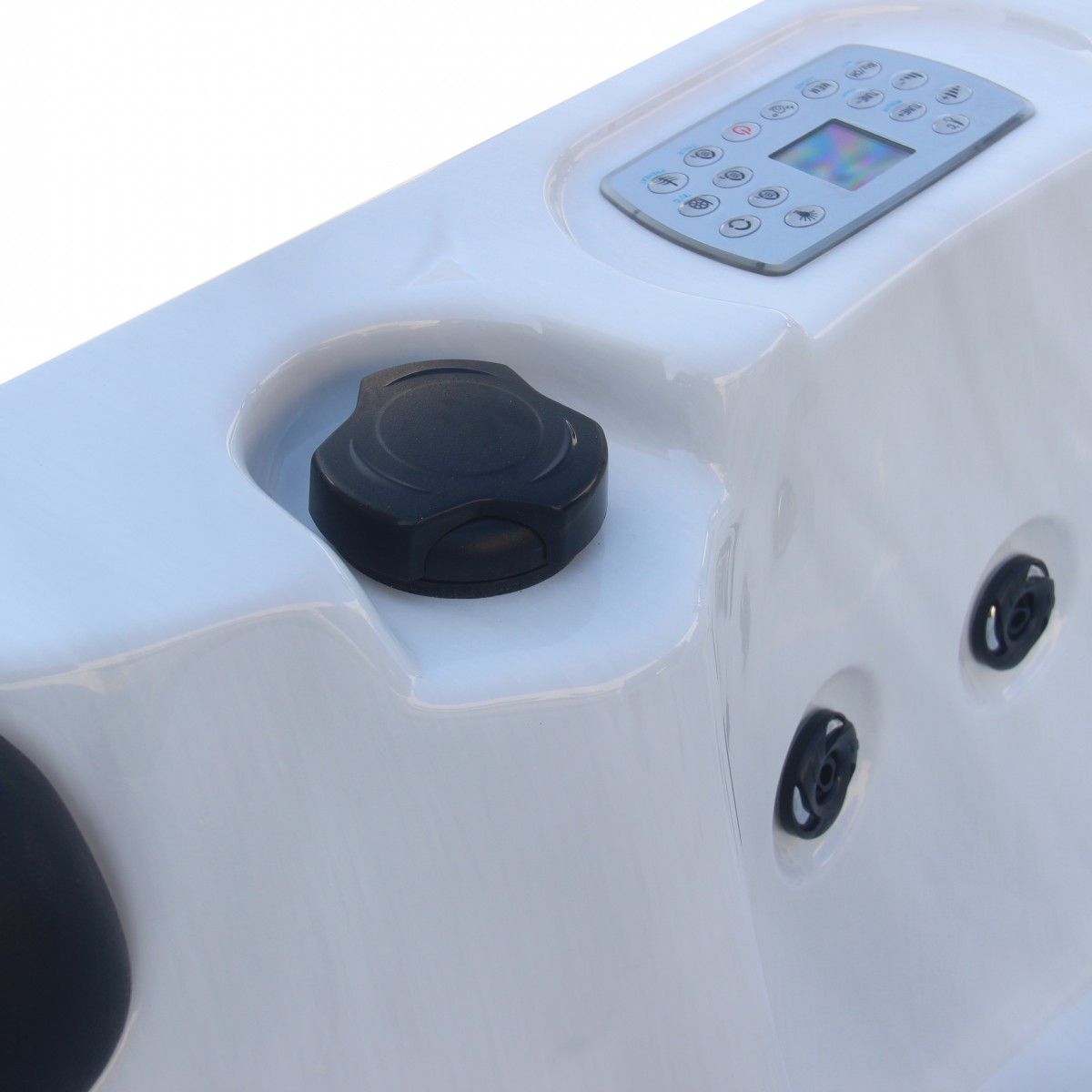 Der OUTDOORPOOL PALMA – White Marble – kompakt, modern und luxuriös. Perfekt für alle, die Wellness, Design und Komfort in ihrem Garten vereinen möchten.