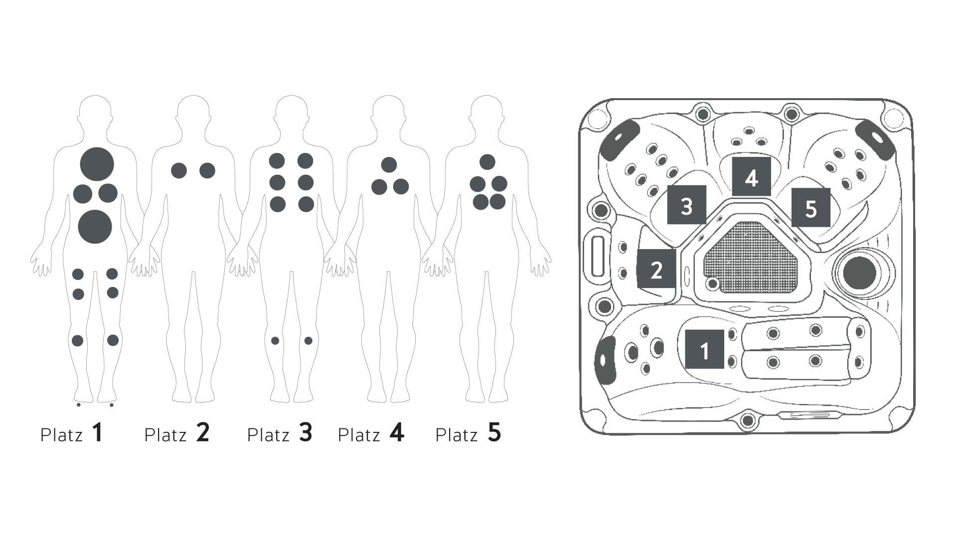 Ausgestattet mit 2 Pumpen (1 Hydropumpe und 1 Umwälzpumpe) und 32 präzise platzierten Massagedüsen, bietet der PALMA eine wohltuende Kombination aus intensiver Massage und sanfter Entspannung. Die ergonomische Anordnung von 4 Sitzplätzen und 1 Liegefläche sorgt für maximalen Komfort und optimale Erholung.