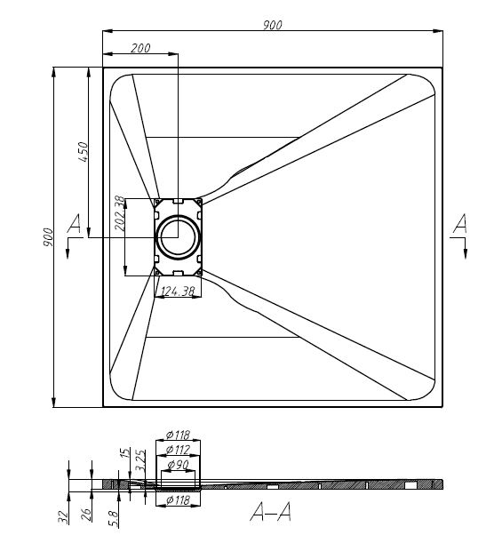 Abmessung: 90 x 90 x 2,6 cm