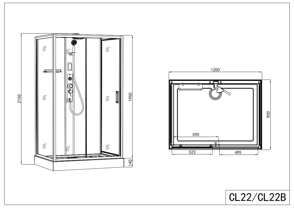 - Abmessungen: 90x120x215 cm