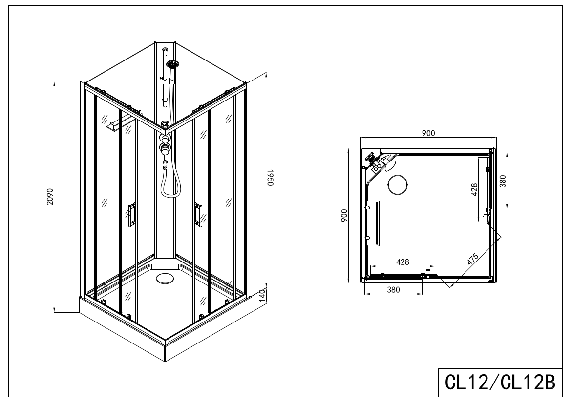 - Abmessungen: 90x90x210 cm