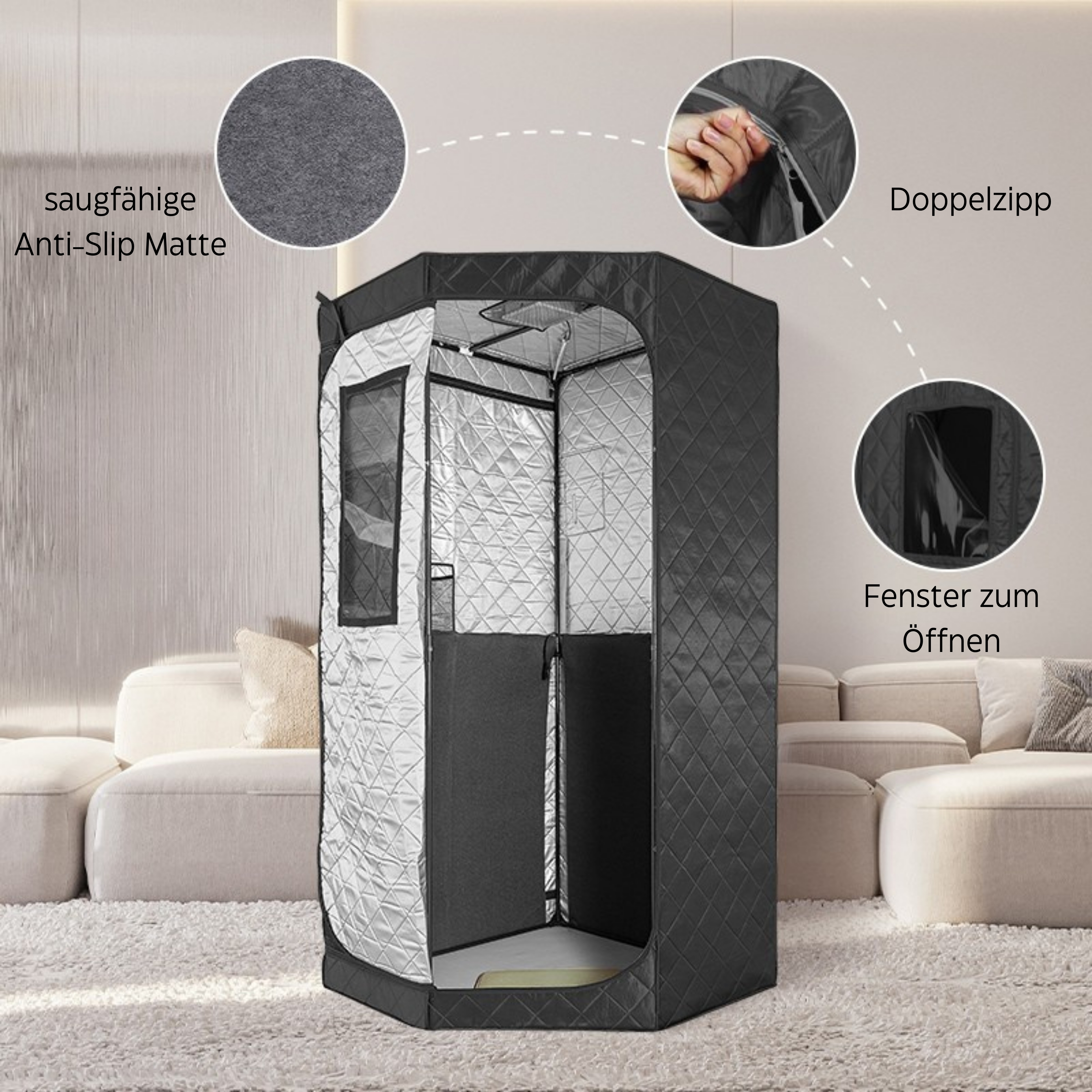 • Saunazelt: dreilagig