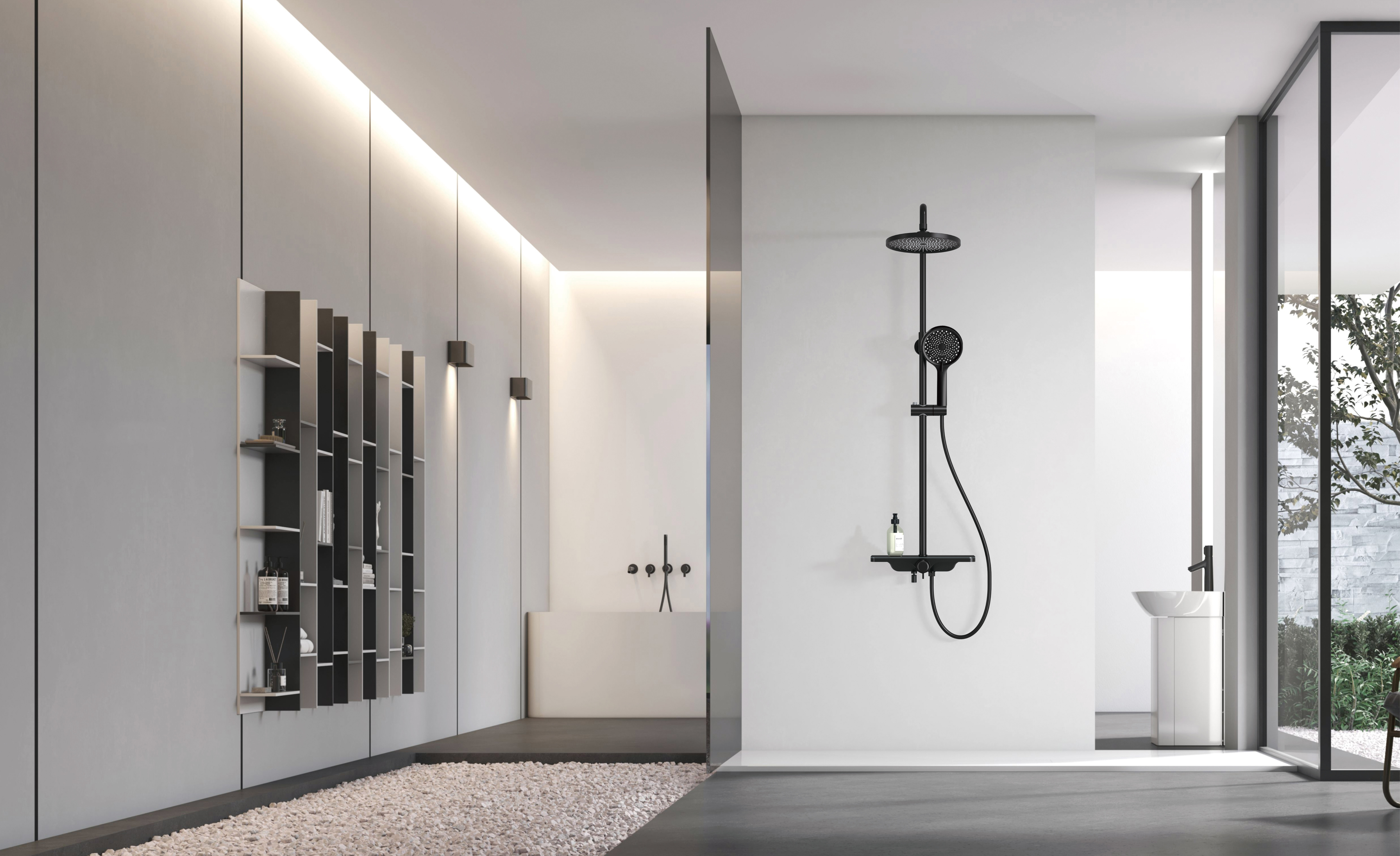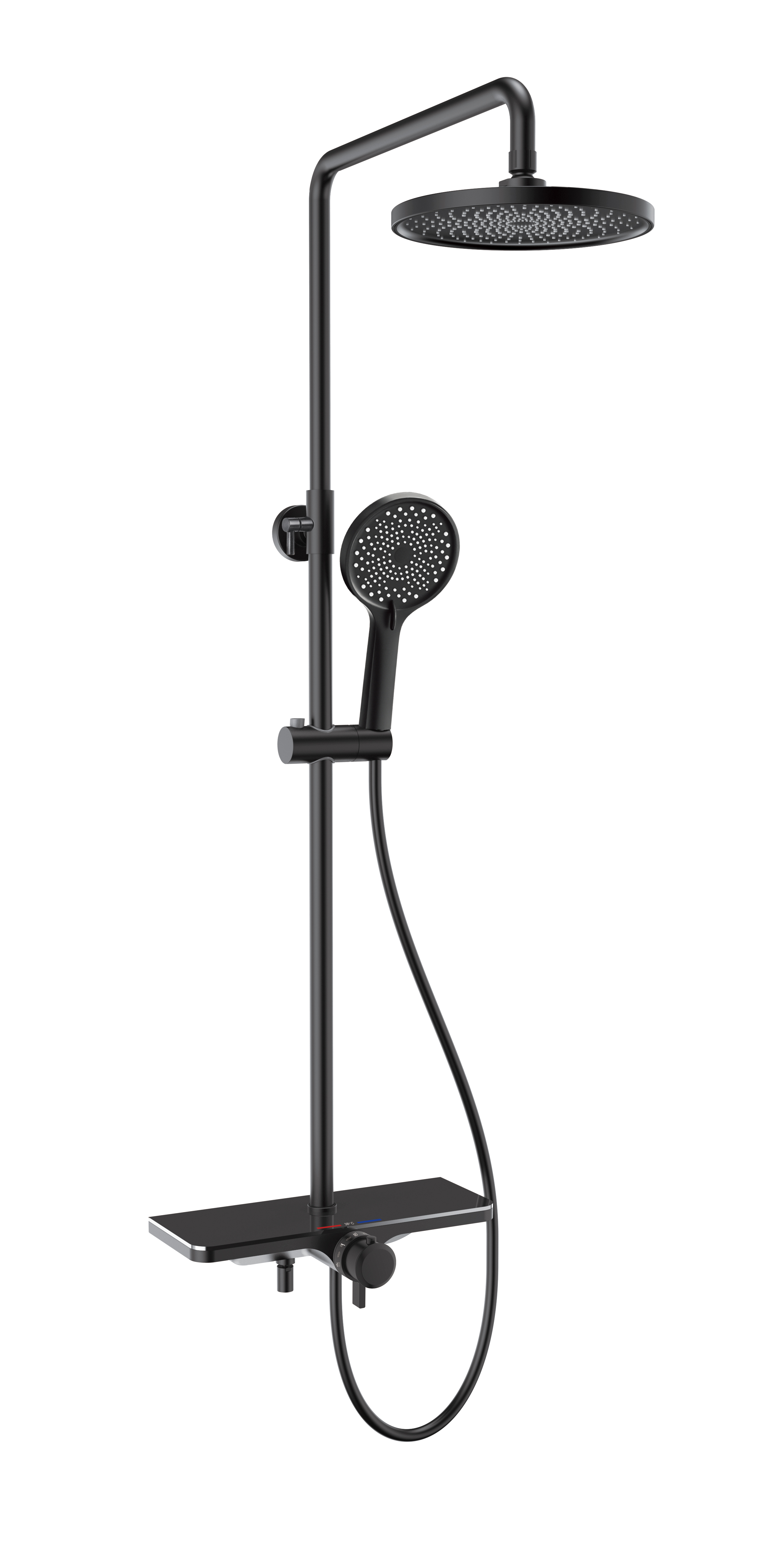 Überkopfbrause Set mit Thermostatmischer in Schwarz
