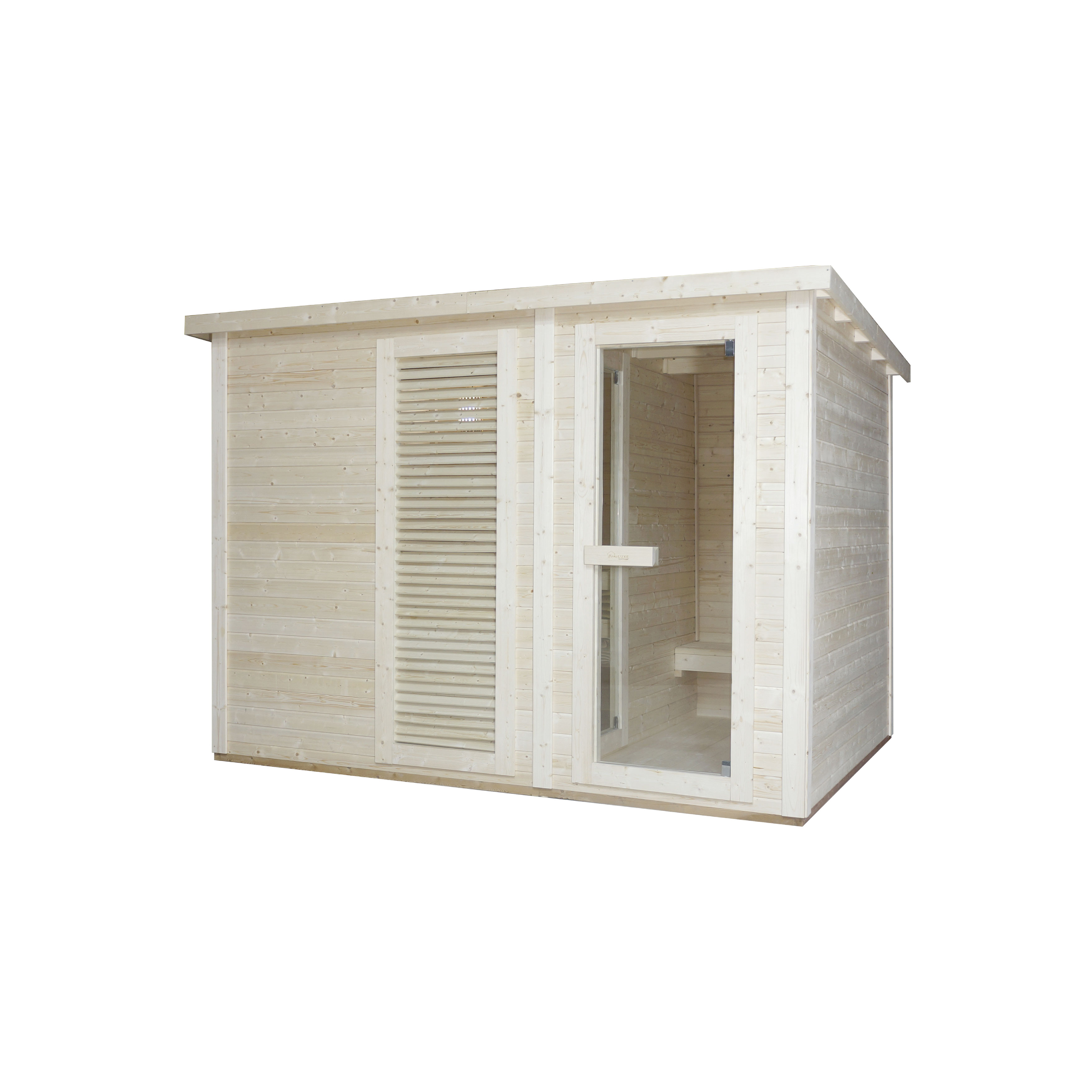 Die VAASA Außensauna vereint traditionelles Saunavergnügen mit moderner Funktionalität und nordischem Design – ideal für 4–5 Personen. Mit integriertem Umkleideraum und großzügigem Innenraum bietet sie alles, was Sie für entspannte Wellnessmomente im eigenen Garten benötigen.