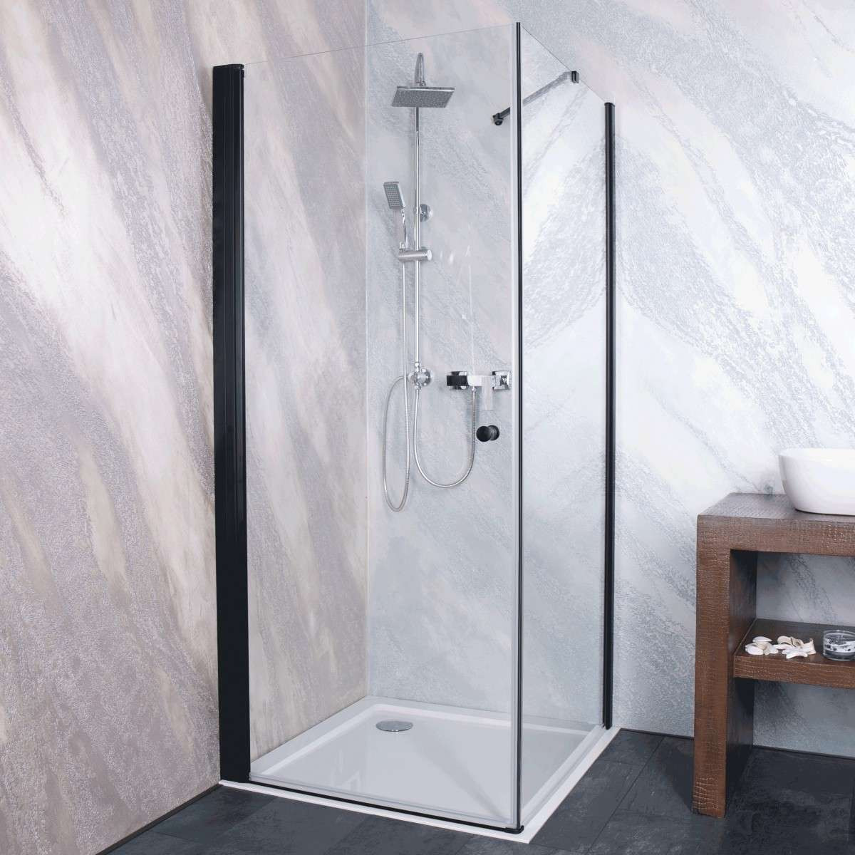 Sanotechnik - Glasfixteil schwarz matt 95-97x195cm