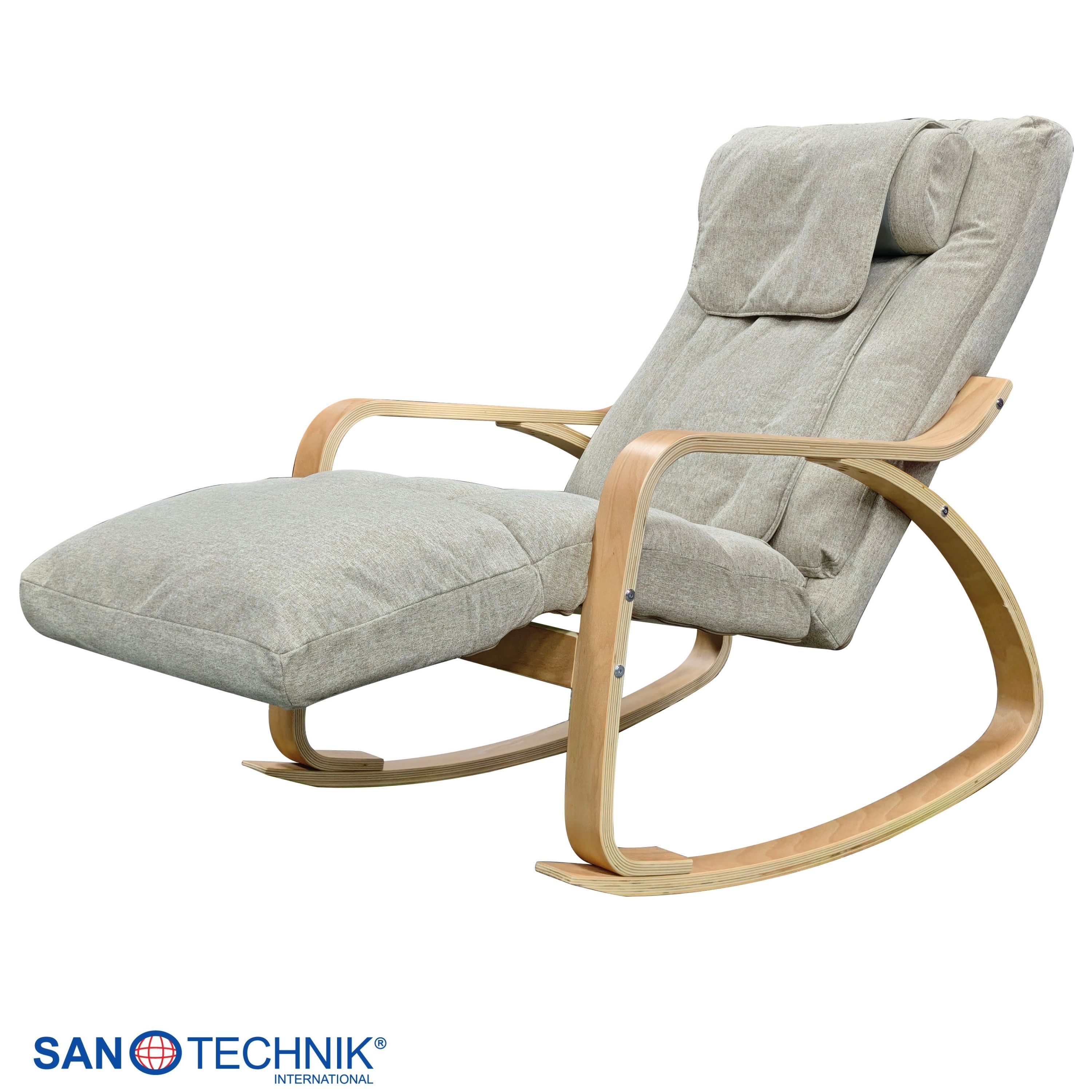 LIGORA Komfortni ljuljački stolac s naslonom spaja nježno ljuljanje s ugodnom masažnom funkcijom – idealno za opuštajuće trenutke u dnevnom boravku, spavaćoj sobi ili zimskom vrtu. Moderni dizajn u elegantnoj sivoj boji, u kombinaciji s kvalitetnim naslonima od bukovog drva, skladno se uklapa u svaki stil namještaja.
