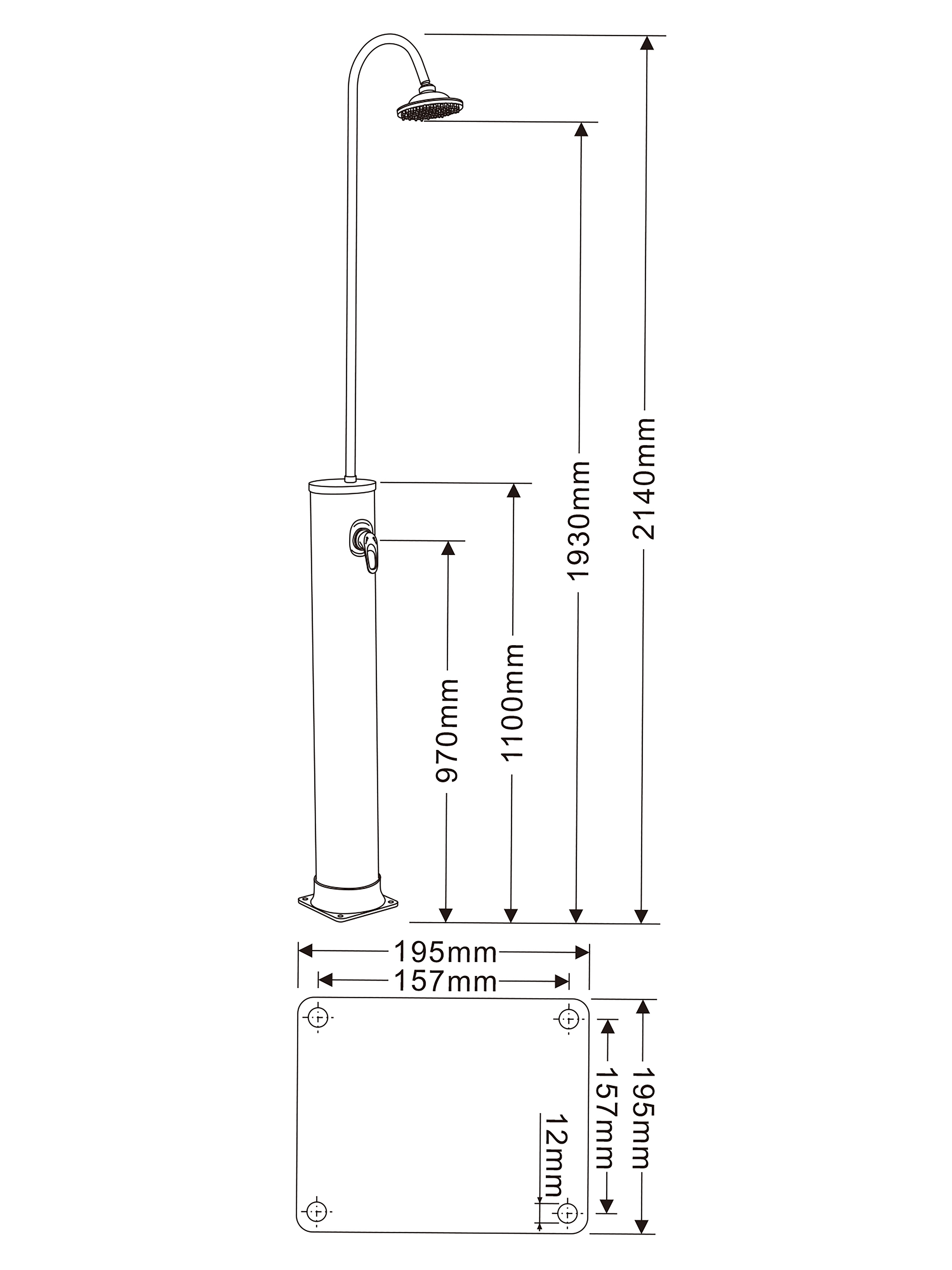 Sanotechnik - Sončna prha črna/srebro 20L