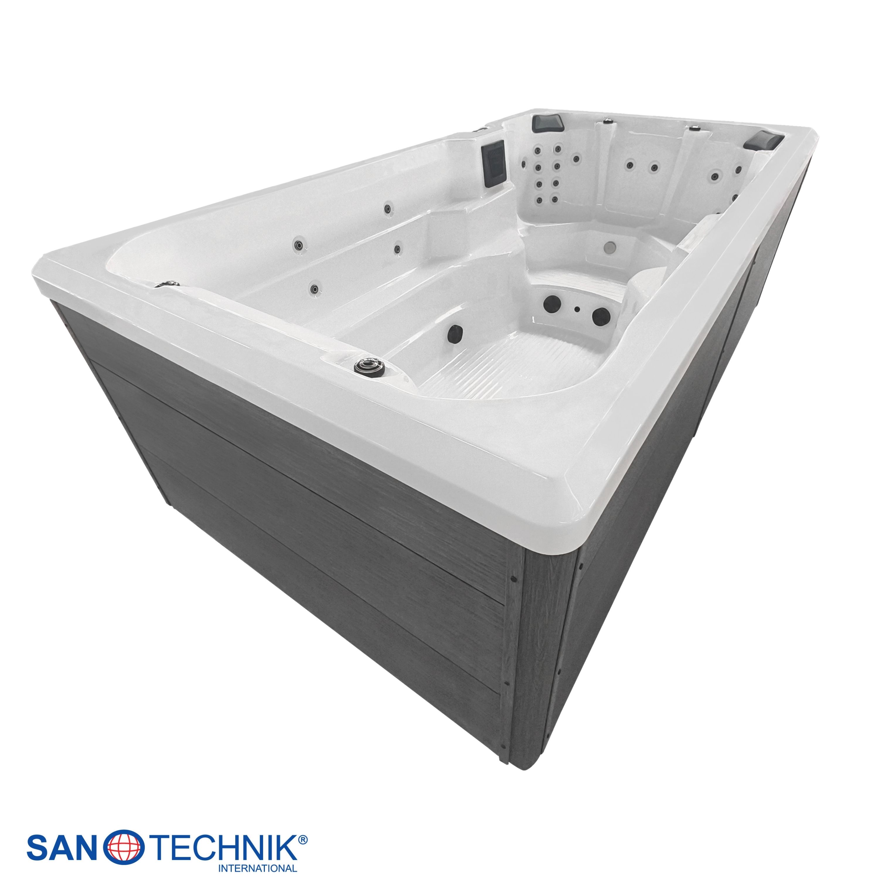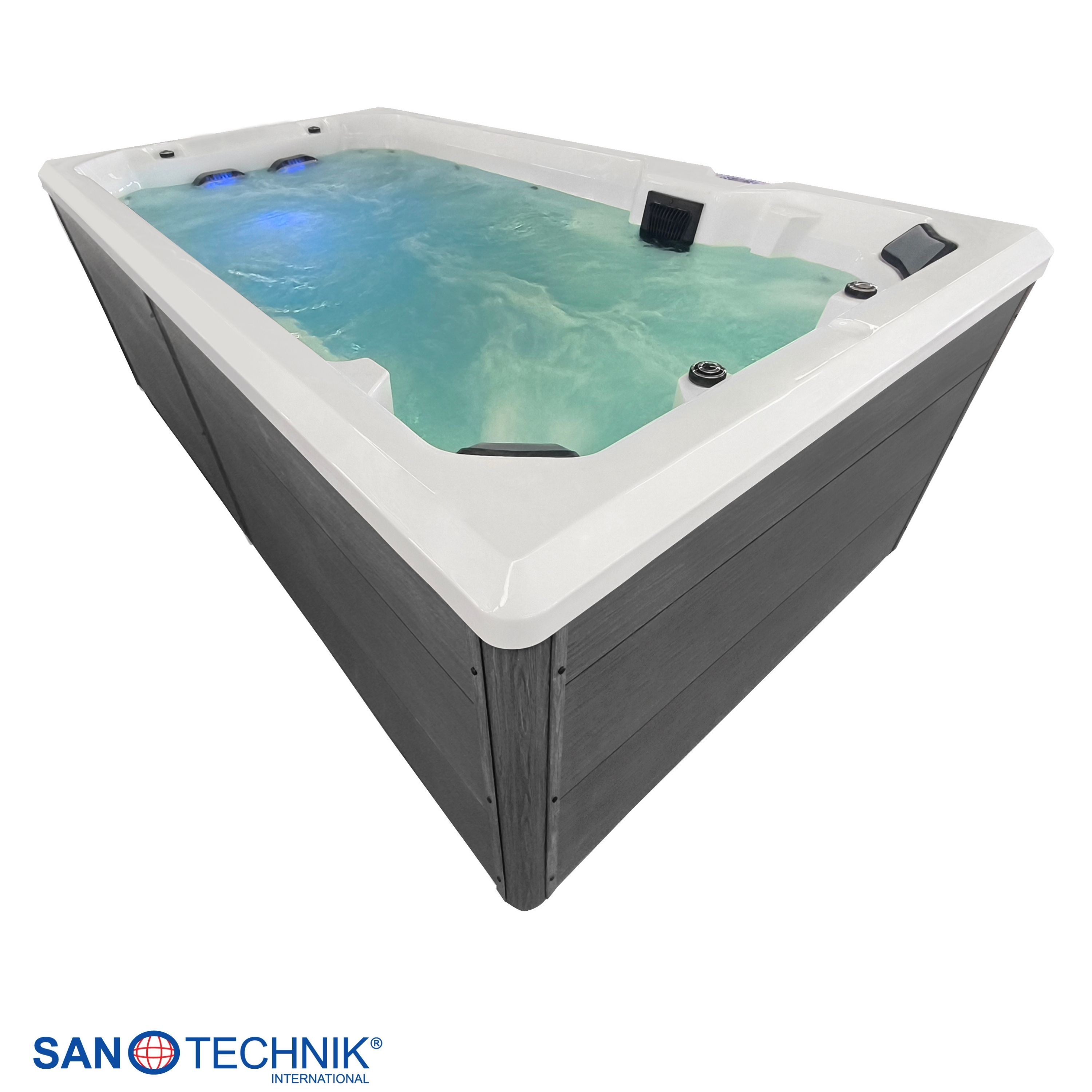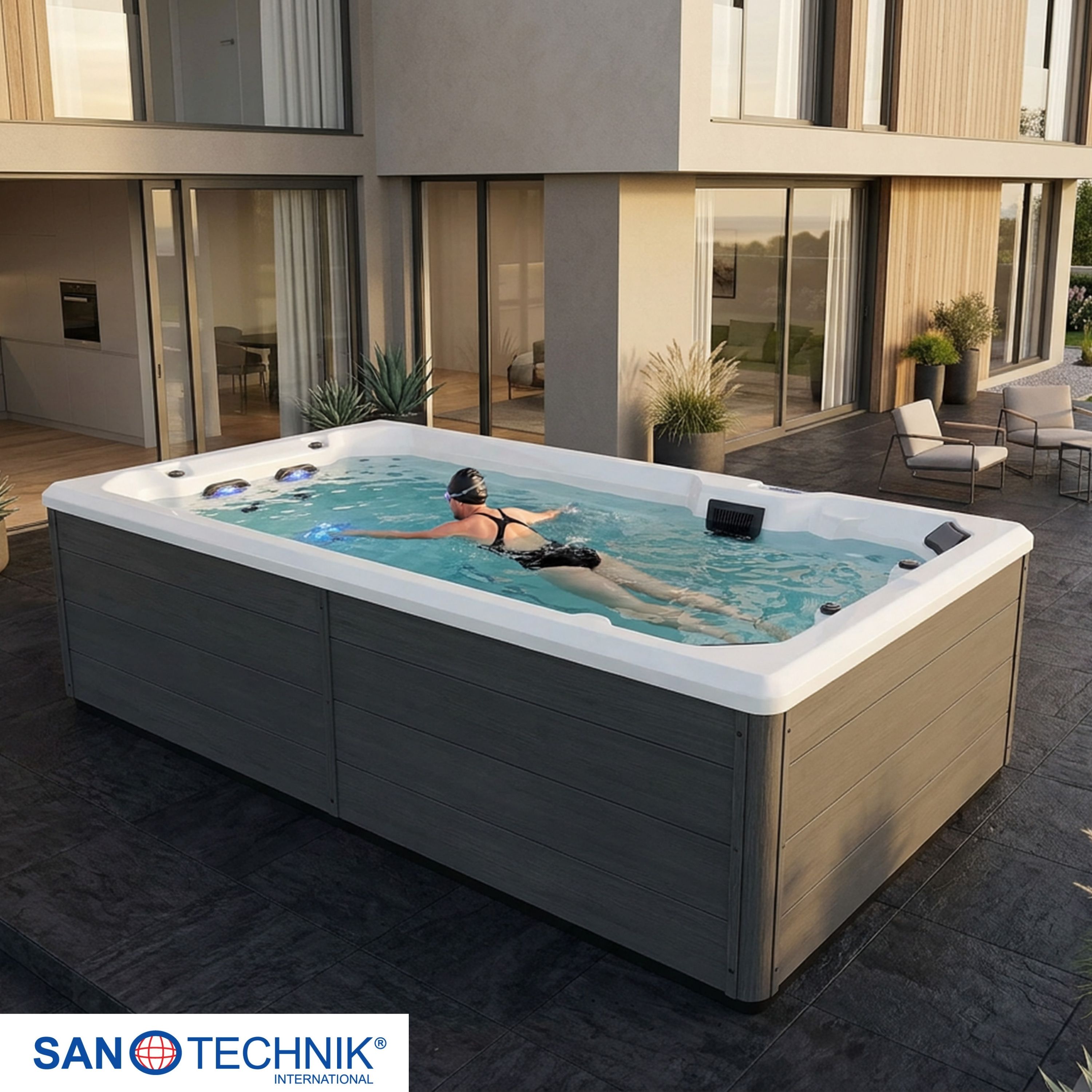Zunanji plavalni masažni bazen VALENCIA – kompakten luksuz za najvišje zahteve. Močan, eleganten in udoben – za nepozabne wellness trenutke doma.