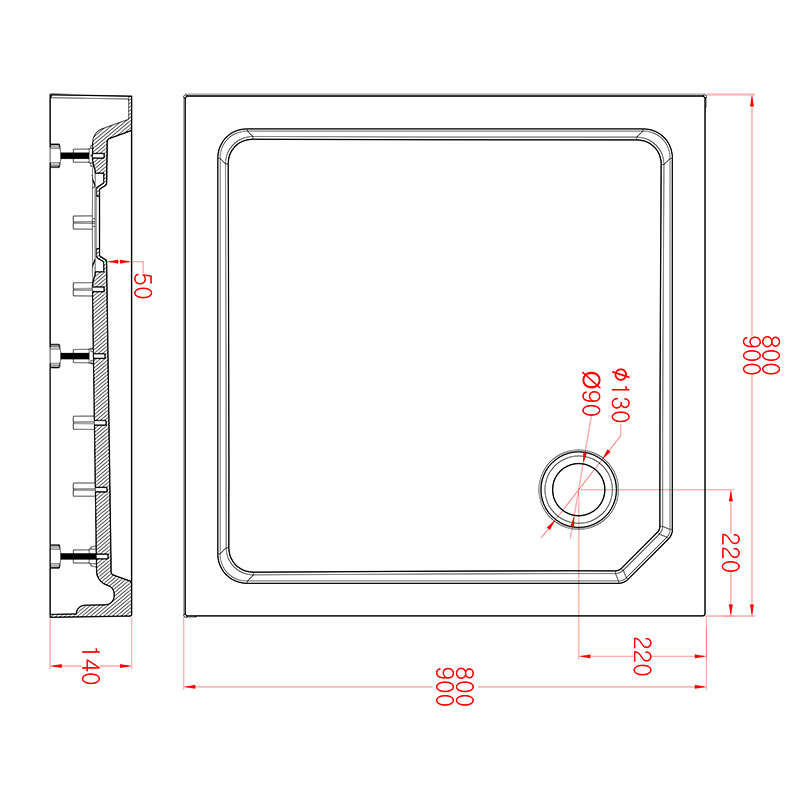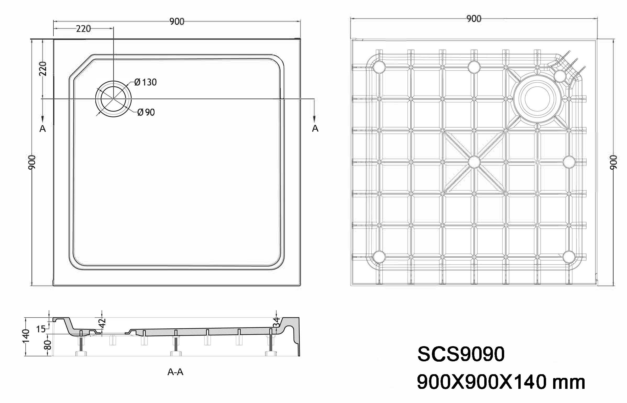 Sanotechnik - SMC tuš kad s sifonom 90x90x14cm